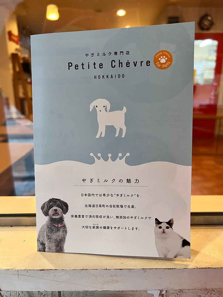 生乳は北海道産やぎミルク100%、当店看板犬試食時の様子からするとかなりおいしいようです。